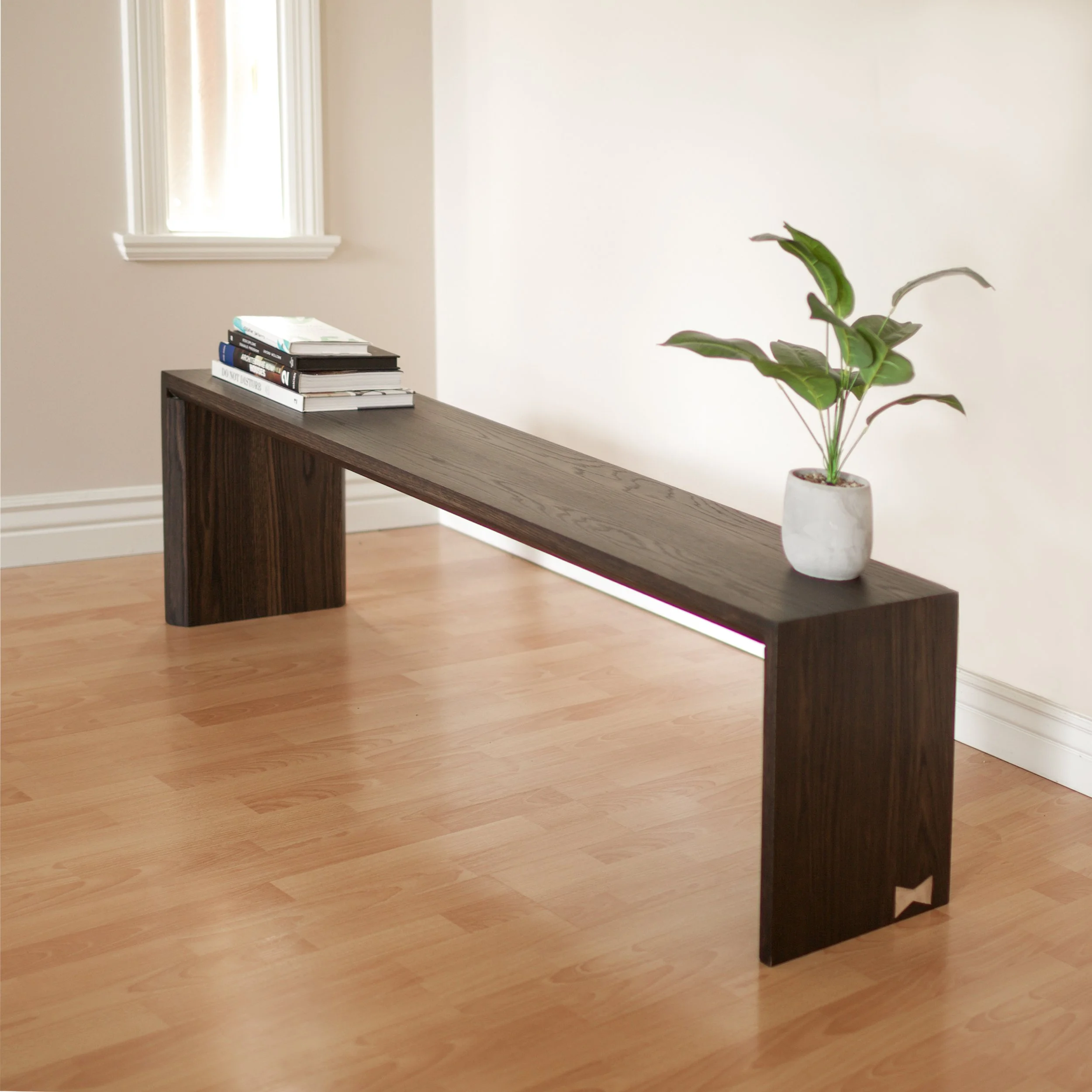 Anything but simple. Hidden stepped miter joint is much stronger than the standard miter. Shallow bevel reduces weight and gives a softer look. Ebonized white oak shows off the unique grain. Maple inlay bowtie adds aesthetic but serves to stabilize.